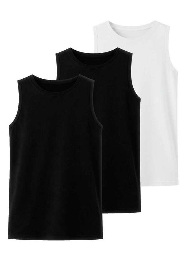 Hering - Kit com 3 Camisetas Regata Masculina Hering 0111 Preto-Branco