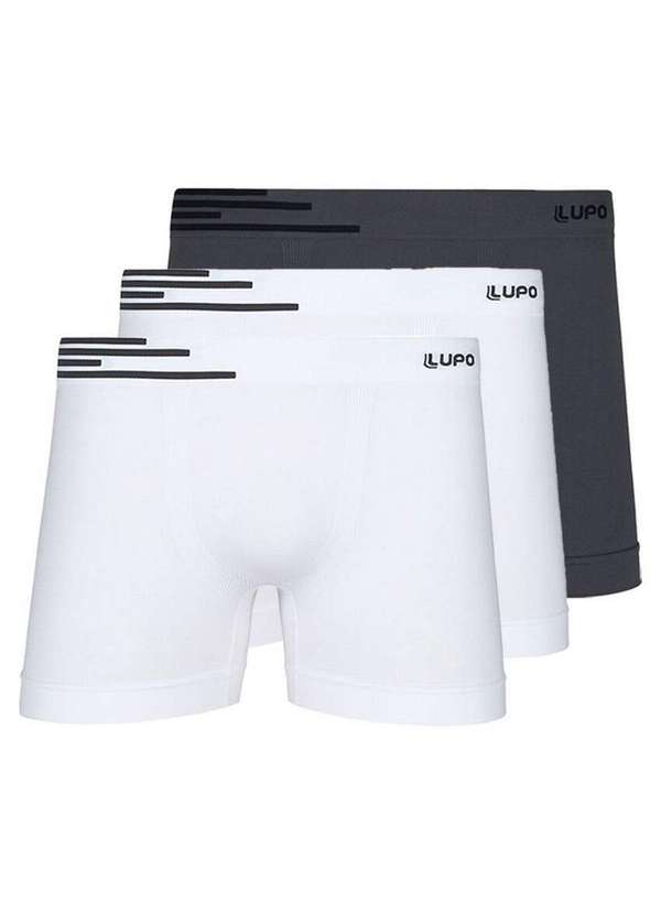 Lupo - Kit com 3 Cuecas Boxer Lupo 436-002 Branco-Grafite