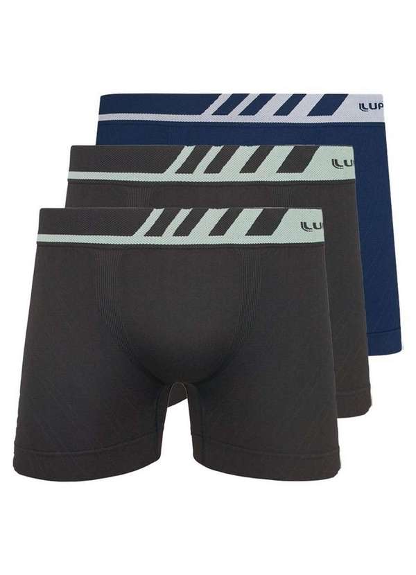 Lupo - Kit com 3 Cuecas Boxer Lupo 671-002 Grafite-Marinho