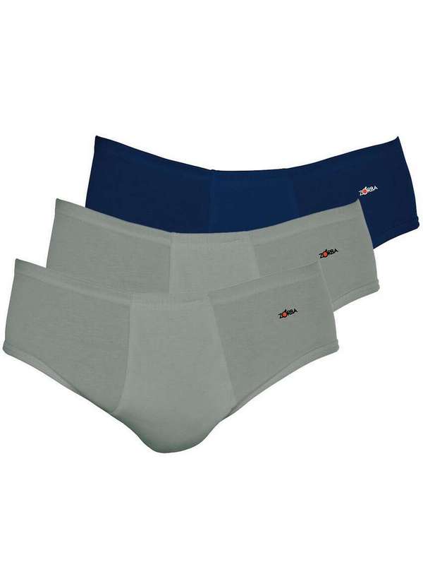 Zorba - Kit com 3 Cuecas Slip Zorba com Abertura 172 Plus Size Grafite-Marinho