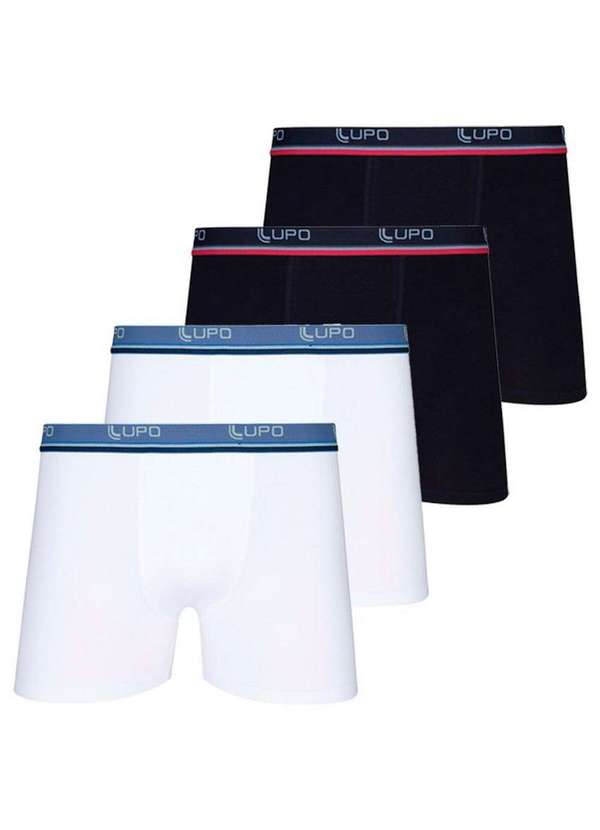 Lupo - Kit com 4 Cuecas Boxer Lupo 523-088 Branco-Preto