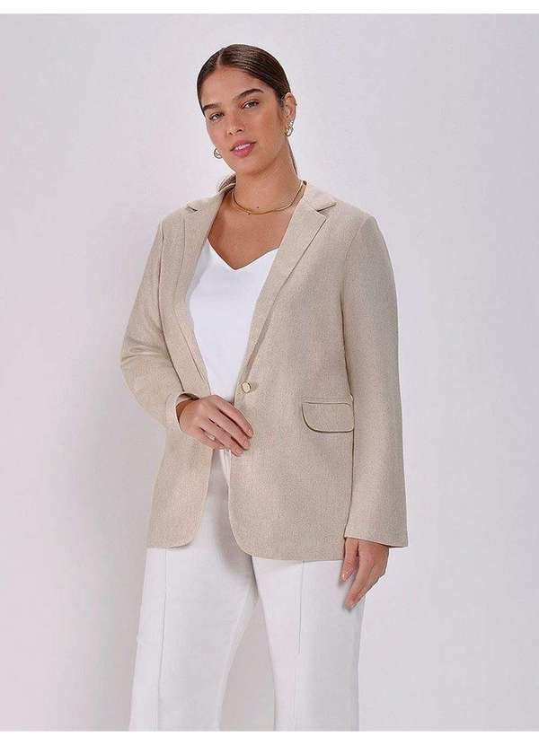 Principessa - Blazer de Linho com Botão Único Plus Size Crú Amaris