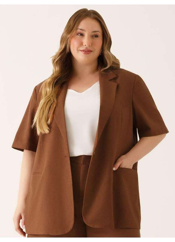 Principessa - Blazer Manga Curta Alfaiataria em Linho Marrom Tallia