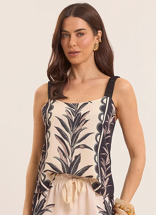 Doce Trama - Blusa de Alça Tropical Estampada Preto