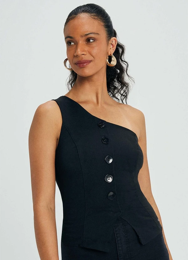 Marialícia - Blusa Feminina Assimétrica com Botões Preto