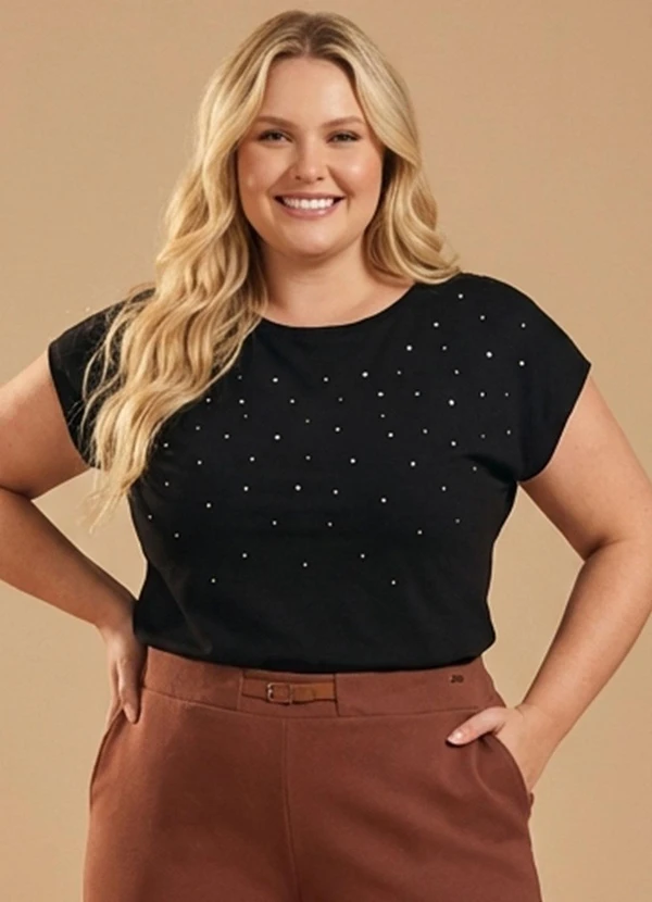 Marialícia - Blusa Feminina Suedine Strass Preto