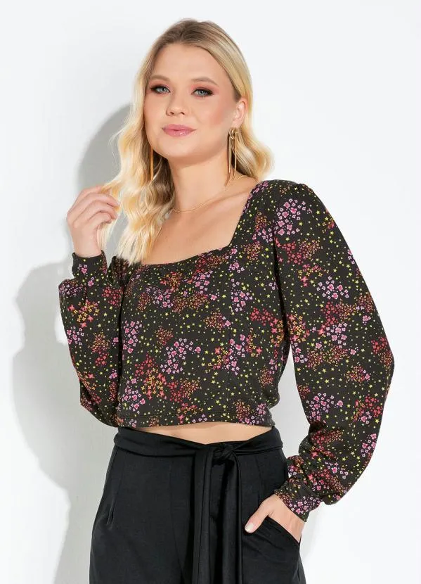 Moda Pop - Blusa Mini Floral com Decote Quadrado
