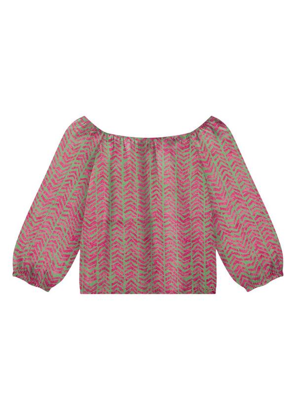 Lunender - Blusa Ombro a Ombro em Viscose Estampada Verde