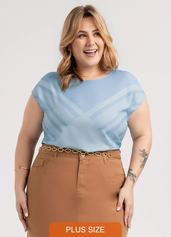 Habana - Blusa Plus Size em Misturinha Azul