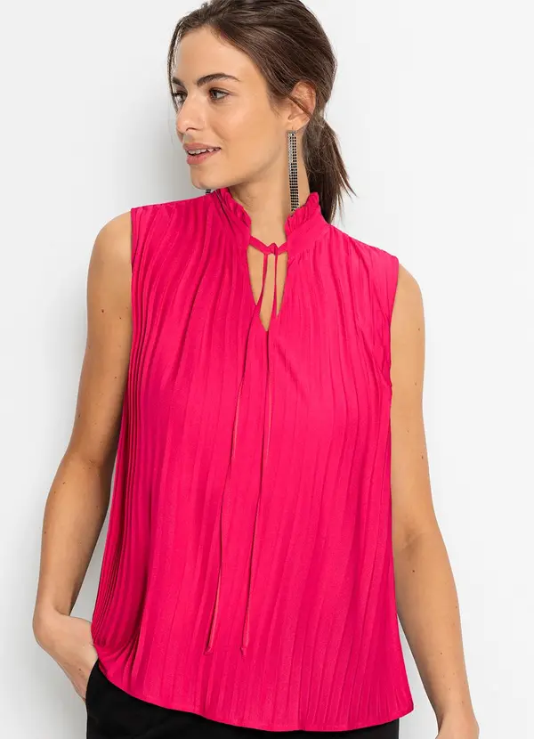 bonprix - Blusa Rosa em Malha Crepe Plissado.