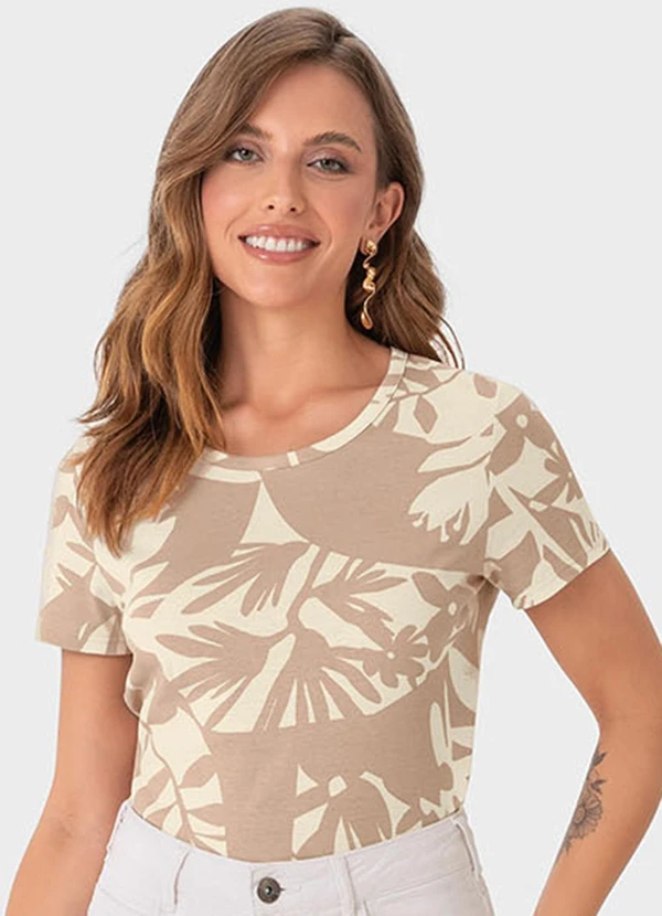 Malwee - Blusa Taupe Folhagens em Meia Malha Feminina