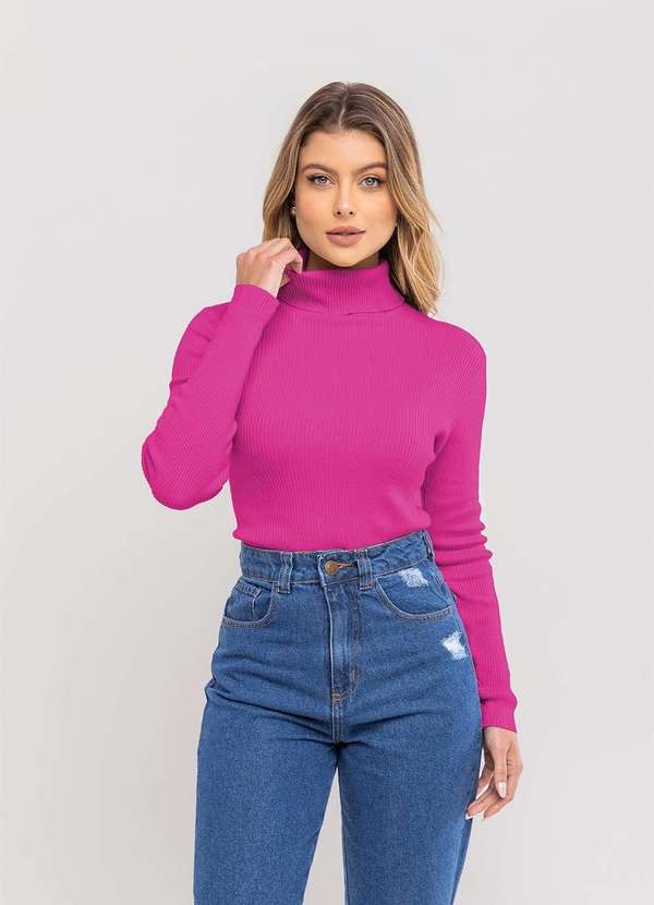 Salvatore Fashion - Blusa Tricot Modal Canelado Gola Rolê Rosa