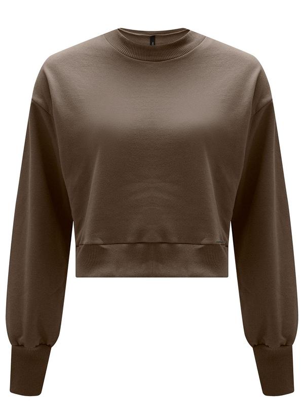 Lunender - Blusão Curto Básico em Moletom Felpado Marrom