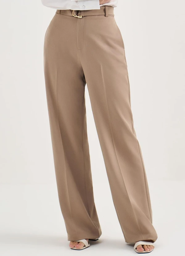 Principessa - Calça Wide Leg de Alfaiataria em Viscose Mocha Mousse Angelica