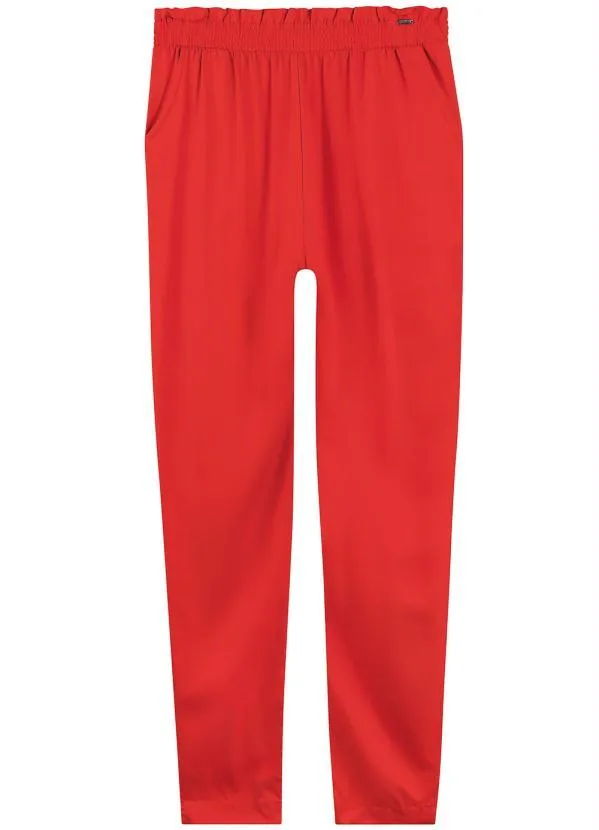 Marialícia - Calça Casual Comfy Básica Sarjada Vermelho