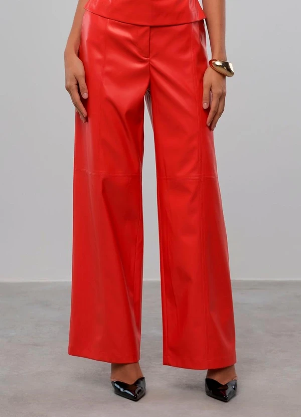 Carlota Costa - Calça de Couro Laranja