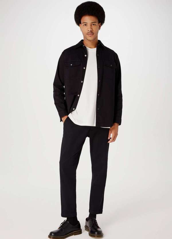 Hering - Calca em Sarja Masculina Taper Chino Peach Touch Preto