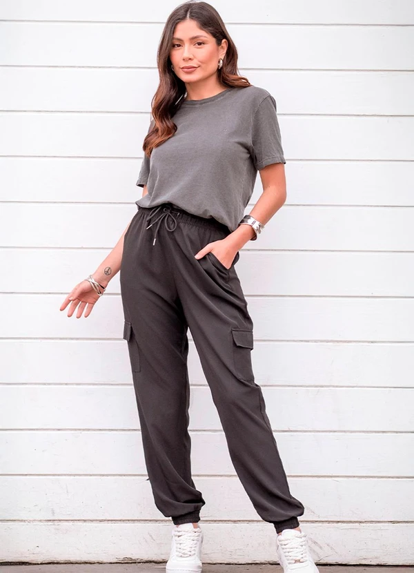 Hiatto Confecção - Calça Feminina Jogger Cargo Preto