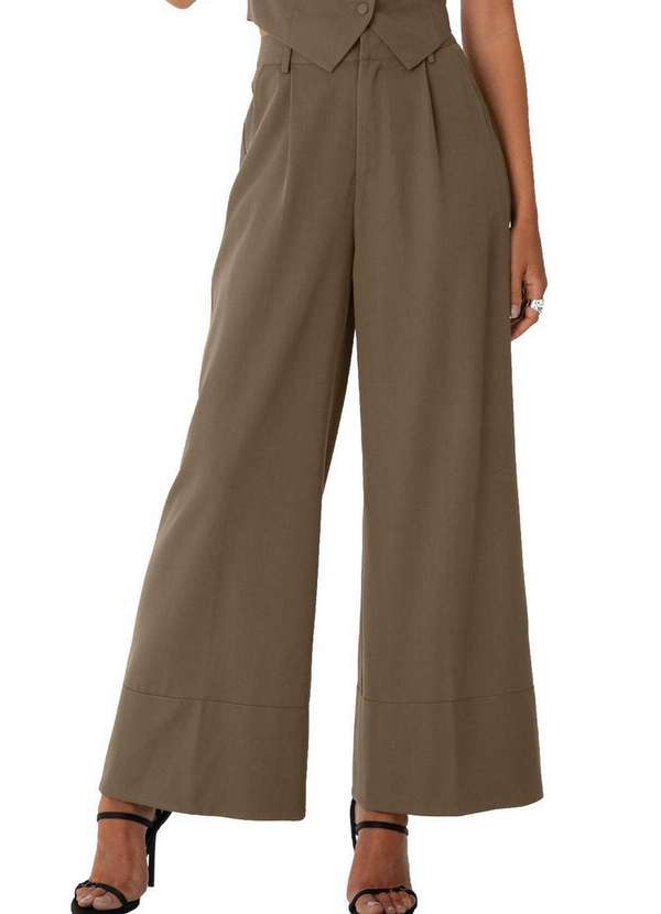 Enfim - Calça Feminina Wide Leg Cropped Enfim 1000129371 70324-Caqui
