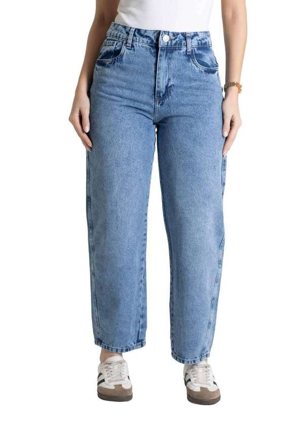 Calça feminina confeccionada em jeans. A peça tem a modelagem barrel, com o caimento é confortavel solto ao corpo. Cintura alta Fechamento através de um botão e zíper Bolsos frontais e posteriores funcionais Barra simples Tecido: Jeans Tipo de Lavagem: azul Cor: AzulComposição: 100% ALGODÃOTipo de lavagem: PLUMA