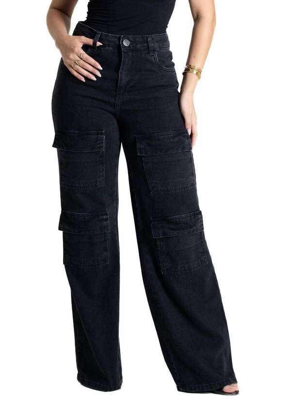 Calça feminina confeccionada em jeans. O modelo possui cintura super alta, gancho no lugar e caimento amplo da coxa até a barra. Cintura alta Fechamento através de um botão e zíper Bolsos frontais e posteriores funcionais Barra simples Tecido: Jeans Tipo de Lavagem: Color Cor: PretoComposição: 100% ALGODÃO