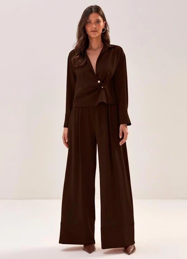 Carlota Costa - Calça Reta com Amarração Marrom