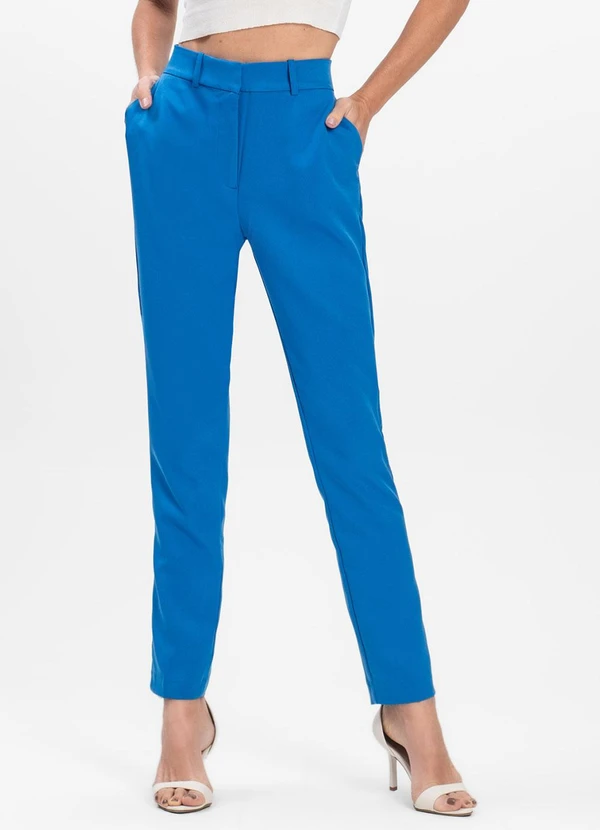 Rovitex - Calça Reta Social em Alfaiataria Aishty Azul