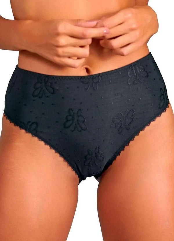 Características: Calcinha confeccionada em tecido com fio Lycra® de toque extremamente macio, com bordado de graciosas borboletas. Com modelagem cintura alta e laterais largas. Cavas das pernas com elásticos decorativos e frente com delicado lacinho de cetim. Modelo ideal para o uso diário. Modo de Lavagem: Lavar a mão. Não usar alvejante. Não secar em tambor. Não passar a ferro. Não limpar a seco. Composição: Corpo: 89% Poliamida e 11% Elastano. Forro fundo: 100% Algodão.