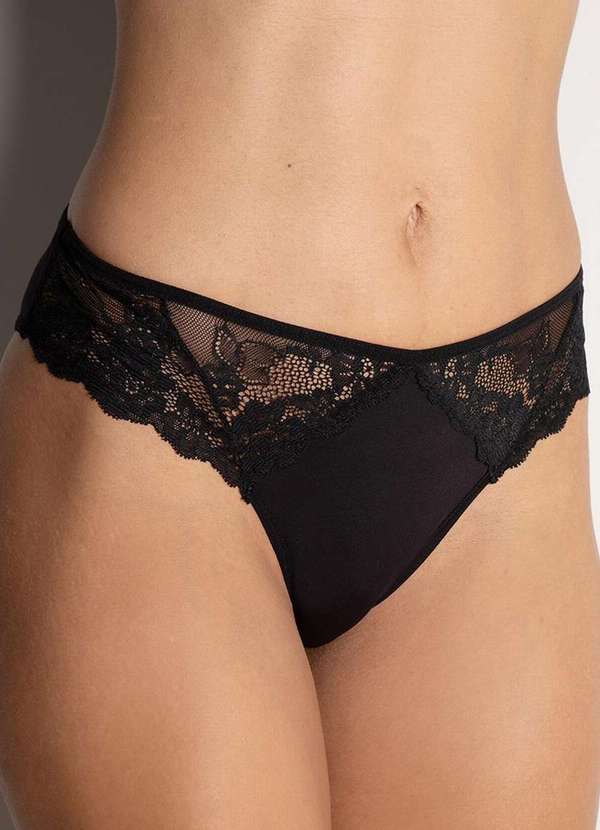 Características: Calcinha modelo biquíni Confeccionada em microfibra Tecno Detalhe em renda frente e nas laterais As laterais ficam sem elástico para não marcar no quadril Fundo em algodão Composição: Tecido: 87% Poliamida e 13% Elastano. Renda: 87% Poliamida e 13% Elastano. Fundo: 100% Algodão