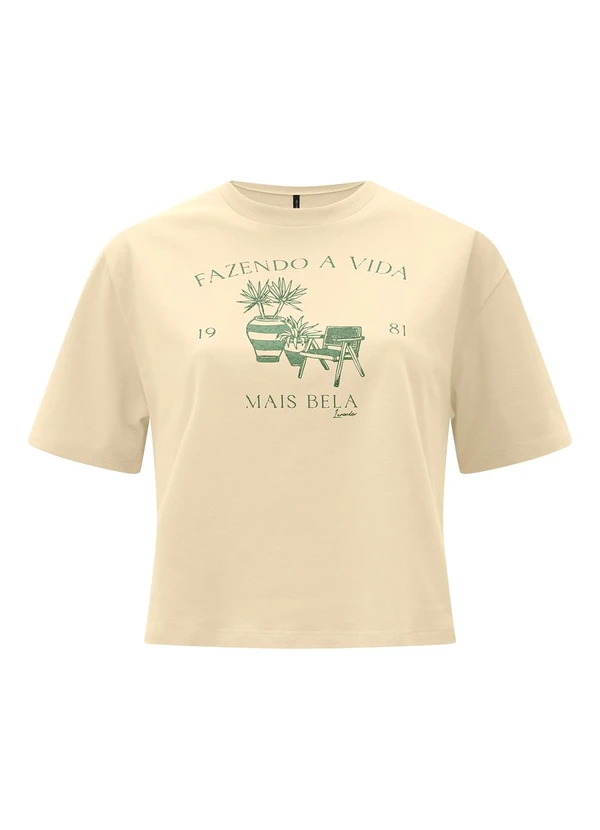 Lunender - Camiseta Cropped D em Meia Malha Penteada Bege