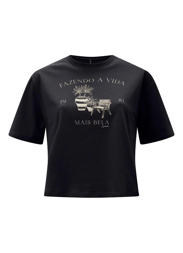 Lunender - Camiseta Cropped D em Meia Malha Penteada Preto