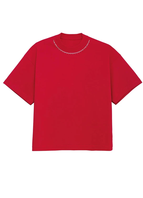 Enfim - Camiseta Feminina Ampla com Pedraria Vermelho