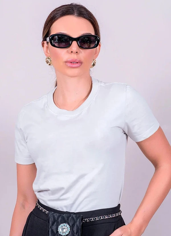Hiatto Confecção - Camiseta Feminina Manga Curta Branca Cinza