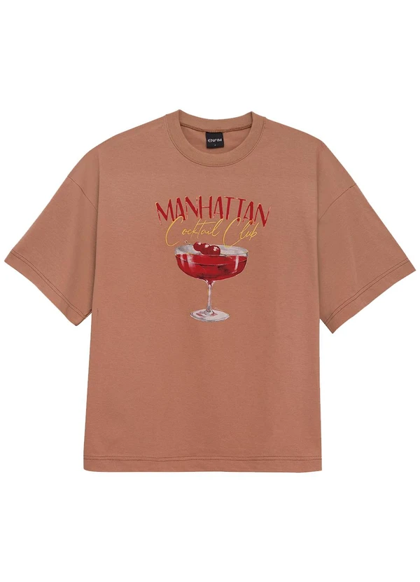 Enfim - Camiseta Manhattan Cocktail Club Ampla Marrom