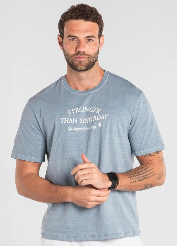 Observação: Possui gola redonda em ribana. - Possui estampa frontal.