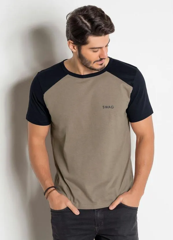 Moda Pop - Camiseta Preta e Marrom com Cava Raglan