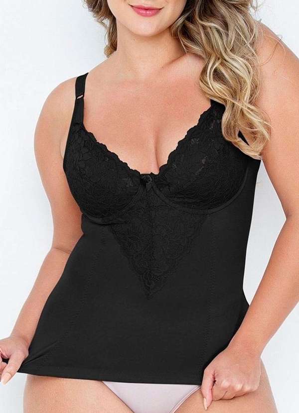 Características: Camisete feminina modeladora. Frente com reforço, garantindo redução do abdômen e barriga. Alças elásticas reguláveis, permitindo ajustar altura do busto. Bojos com recorte anatômico e aro firmador. Detalhes em renda que promovem charme e sensualidade à peça. Atende tamanho Plus Size. Composição: 90% Poliamida,10% Elastano.