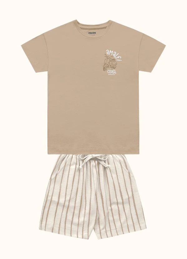 Fakini Kids - Cj.Camiseta/Bermuda Bege