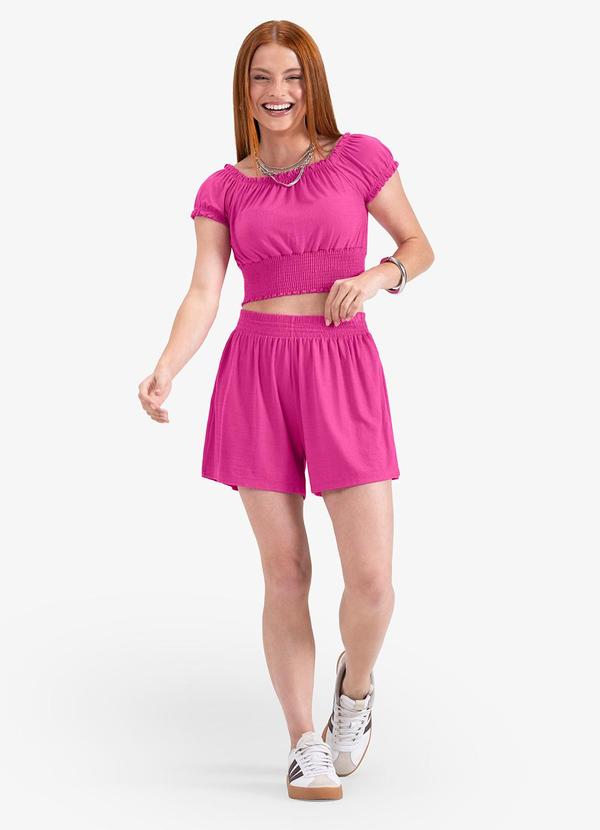 Minty - Conjunto Blusa com Shorts em Viscose Rosa