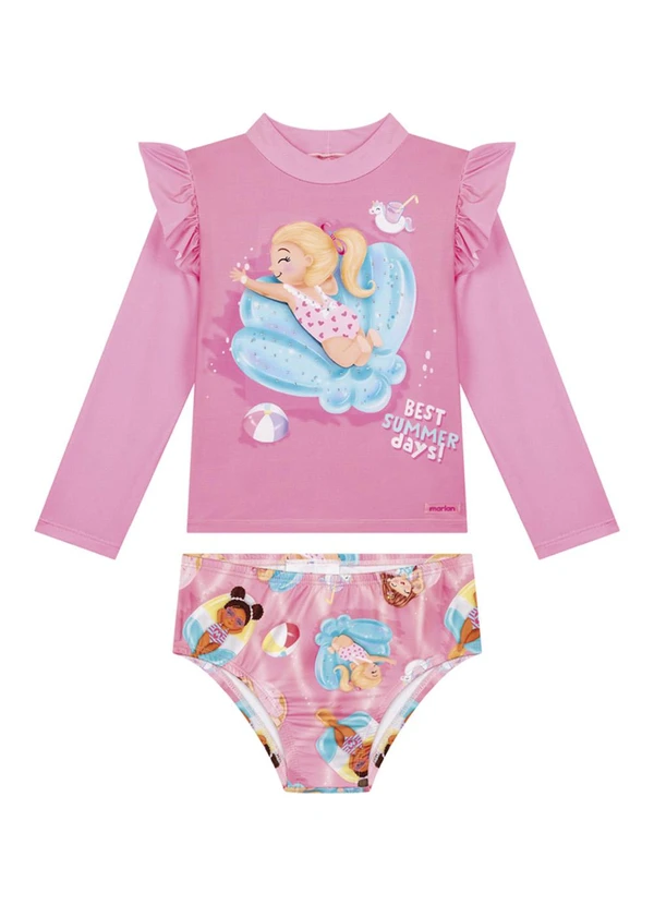 Marlan - Conjunto Blusa Manga Longa e Tanga em Rosa