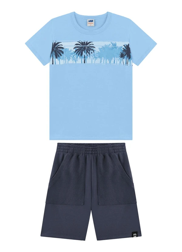 Marlan - Conjunto Camiseta e Bermuda em Moletinho Azul