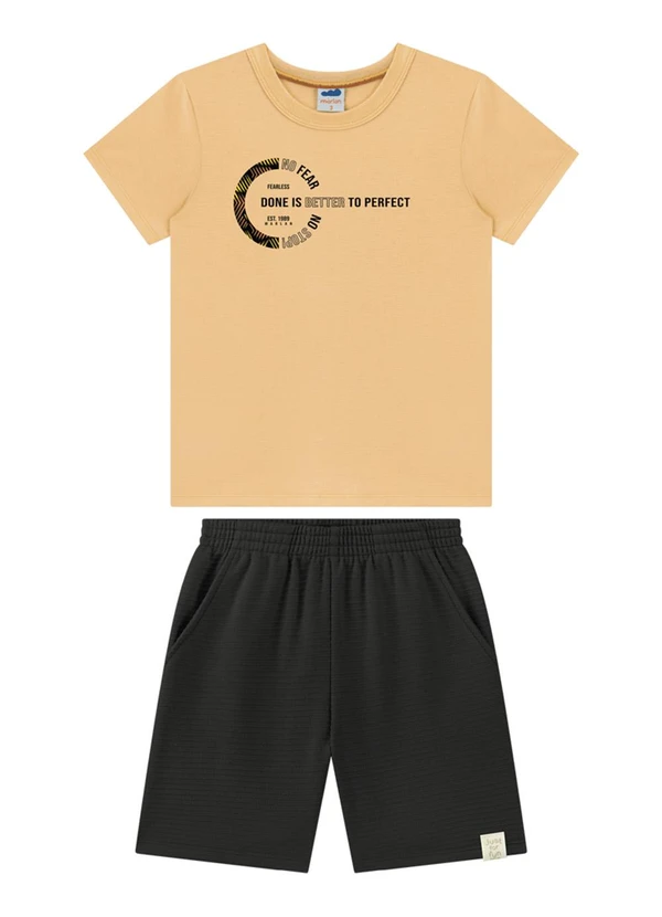 Marlan - Conjunto Camiseta e Bermuda Moletinho Laranja