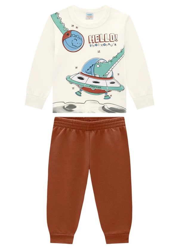 Marlan - Conjunto Camiseta Manga Longa e Calça Bege