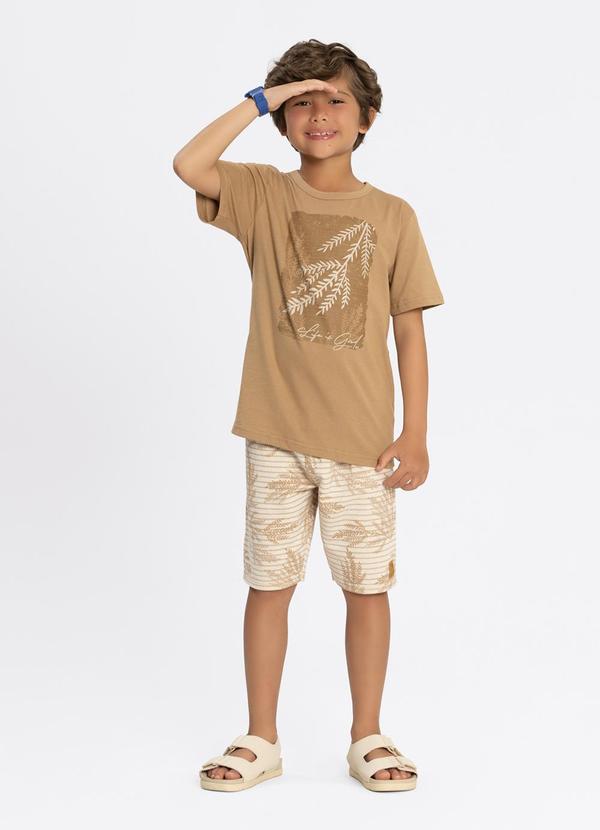 Alakazoo - Conjunto com Camiseta e Bermuda com Linho Bege