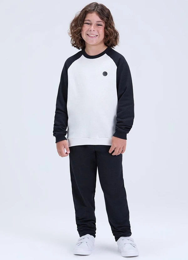 Vida Costeira - Conjunto de Moletom Raglan com Aplique Preto