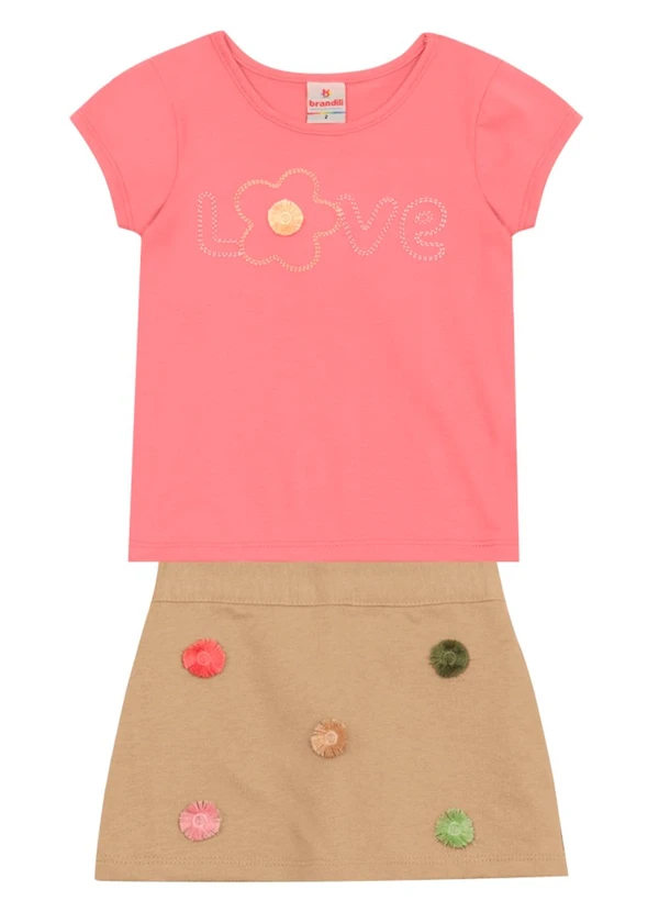 Brandili - Conjunto Infantil Menina com Flores Rosa