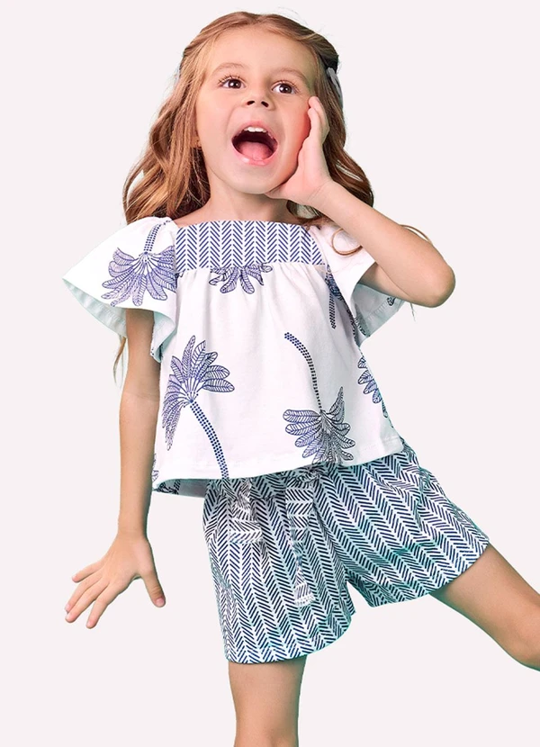 Nanai - Conjunto Infantil Menina Estampa Branco