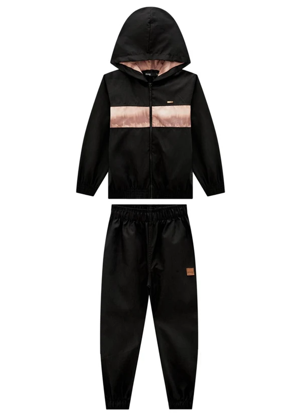Ioluig - Conjunto Jaqueta Microfibra e Calça Taslon Preto