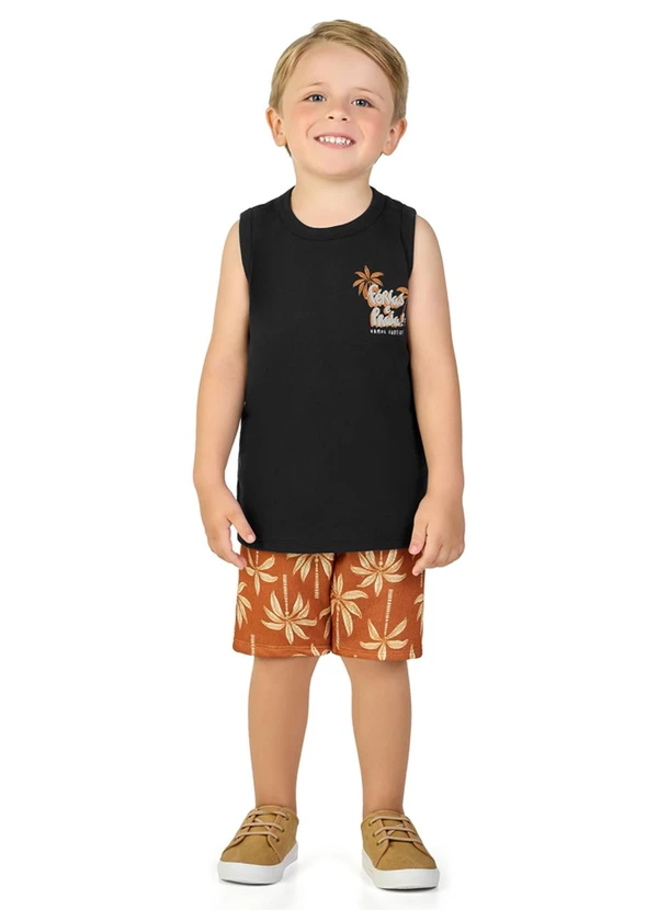 Marlan - Conjunto Regata e Bermuda em Moletinho Preto