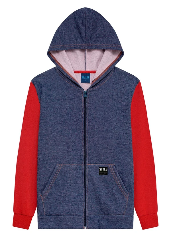 Ddk - Jaqueta com Capuz em Moletom Jeans Vermelho